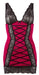 Rotes Dessouskleid mit Zierschnürung in der Front. Edle schwarze Spitzeneinsätze an Dekolleté, Bauch und Saum machen den sexy Look perfekt. Träger verstellbar.