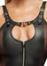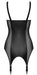 Schwarzes Strapshemd von ZADO aus weichem Lammnappa mit seitlichen transparenten Powernet-Einsätzen. Dadurch angenehm elastisch für anschmiegsame betonende Passform. Vorne mit durchgehendem Reißverschluss. Cut-out im Dekolleté mit Schmuckschließe. Die Schnallenträger sowie die Strumpfhalter sind passend verstellbar.