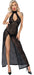 Langes schulterfreies Kleid von Noir komplett aus elastischem, weichem Powernet mit feinem Samtflockprint im Leo-Look. Vorne mit tiefem Keyhole-Ausschnitt unter dem kleinen Stehkragen mit Hakenverschluss. Aufregender Gehschlitz bis zur Hüfte. Im bis zum Po freien Rücken mit schmalem Stretchband für sicheren Halt.