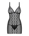 Extra kurzes figurbetontes Negligé und dazu passender String im Set Lucita von Obsessive. Feine Tüll-Transparenz mit zarter Spitze in der Front und an den Cups. Rundum weich und elastisch für vollen Komfort. Die Träger sind passend verstellbar.