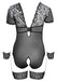 Body ouvert von Cottelli BONDAGE aus elastischem Powernet mit feinen Spitzen-Einsätzen. Mit halbem Arm und Strassstein-Verzierung zwischen den Bügel-Cups. Hinten mit Hakenverschluss. Slip-Teil im Schritt offen, vorne mit Spitze, hinten komplett aus Powernet. Inklusive sind die Oberschenkel- und Handfesseln aus Spitze, die durch roségoldfarbene, abnehmbare Karabinerketten miteinander verbunden sind.