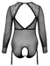 Schwarz-transparenter Langarm-Body ouvert von Cottelli CURVES aus feinem Powernet mit Einsätzen aus zarter Spitze. Rundum elastisch und soft anschmiegsam für hautnahen Sitz mit höchsten Tragekomfort. Im Rücken großer Ausschnitt, Clipverschluss im Nacken. Im Schritt bis über den Po einladend offen. Die beiden Strumpfhalter vorne sind verstell- und auch komplett abnehmbar.