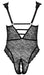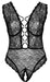 Body ouvert von Cottelli CURVES komplett aus feiner Spitze mit roségoldfarbenen Details. Mit Bügel-Cups und dekorativen Stretchbändern im tiefen Dekolleté, genauso wie im v-förmigen Rückenausschnitt. Rundum elastisch und soft anschmiegsam für hautnahen Sitz mit höchsten Tragekomfort. Im Schritt einladend geöffnet. Die breiten Träger sind für perfekte Passform in der Länge verstellbar.
