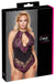 Transparenter Body von Cottelli CURVES aus feiner 2-farbiger Blütenspitze mit blickdichtem Einsatz in der Taille. Vorne und hinten raffiniert ausgeschnitten, vorne am Hals mit Clipverschluss. Im Slip-Teil aus Spitze mit erotisch-praktischem Druckknopf-Schrittverschluss.