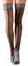 Halterlose Strümpfe mit silberfarbenen Spitzenabschluss und Ziernaht hinten. Das Silikonband im Inneren sorgt für einen sicheren Halt. Oeko-Tex zertifiziert.