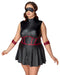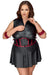 Ärmelloses kurzes Kleid von Cottelli BONDAGE PLUS in enger Schnittführung mit ausgestelltem Röckchen. Rundum elastisch und im edlen schwarzen Mattlook mit roten Kontraststreifen in taillenbetonender Mieder-Optik. Jeweils seitlich ein Ring für die beiden beiliegenden soften Armfesseln mit ihren Karabiner-Ketten. Die Fesseln sind mit Klettverschlüssen passend verstellbar. Vorne mit durchgehendem 2-Wege-Reißverschluss, der sich vom Stehkragen und dem Saum variabel öffnen lässt. Die leicht gepolsterte Augenmaske ist inklusive und absolut blickdicht fürs aufregende Spiel.