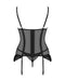 Strapshemd und String im Set Serena Love von Obsessive. Strapshemd in feiner schwarzer Transparenz mit Blütenspitzendetails. Mit Cup-Bügeln und Formstäben gearbeitet. Hinten mit Hakenverschlussleiste. Die Träger und Strumpfhalter sind passend verstellbar. Stringfront komplett aus weicher elastischer Spitze.
