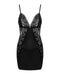 Figurbetonendes Dessouskleid und String im schwarzen Set Maderris von Obsessive. Weich und elastisch mit schöner Spitze an Cups und Seiten sowie im Rücken. Hinten mit BH-Hakenverschluss. Die Träger sind verstellbar.