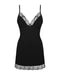 Kurzes Dessouskleid und String im schwarzen Set Bella Rou von Obsessive. Weich und elastisch mit schöner Spitze an den soften Cups und am Saum. Die verstellbaren Träger kreuzen sich im freien Rücken.