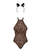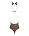 Kostüm-Set Leocatia von Obsessive für heiße animalische Rollenspiele. Bestehend aus transparentem Leo-Body und Haarreif mit Öhrchen. Knapp geschnittener Stringbody mit extra hohen Beinausschnitten und verstellbarem Neckholder – rückenfrei.