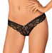 Verführerisch geschnittener schwarzer String Serafia von Obsessive aus bildschöner Blütenspitze. Rundum weich und elastisch für vollen Tragekomfort. Vorne am Bund mit kleinem Schmuckelement.