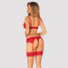 3-teiliges Set Ingridia von Obsessive mit Bügel-BH, Strapsgurt und String. Alles in roter feiner Transparenz mit schönen Spitzen-Details. Rundum weich und elastisch für hohen Tragekomfort. Gepolsterte Bügel-Cups mit kleinem Schmuckelement für ein schönes Dekolleté. BH und Strapsgurt mit verstellbarem Hakenverschluss im Rücken. Auch die Träger und die Strumpfhalter sind passend verstellbar.