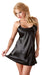 Kurzes Negligé aus schwarzem Glanz-Satin. Hinten tiefer Rückenausschnitt. Spaghetti-Träger im Rücken zu schließen und individuell verstellbar für perfekte Passform.