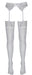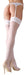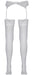 Weiße Straps-Strümpfe mit 7 cm breiter Blütenspitze am oberen Rand. 20den. Oeko-Tex zertifiziert.