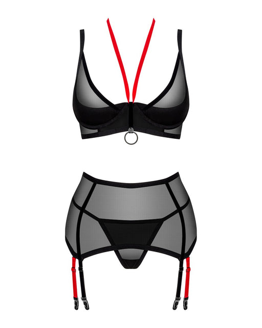Perfektes Verführ-Trio!3-teiliges schwarzes Set Bellastia von Obsessive mit Bügel-BH, Strapsgurt und String. Weiches Stretchmaterial und softe elas...