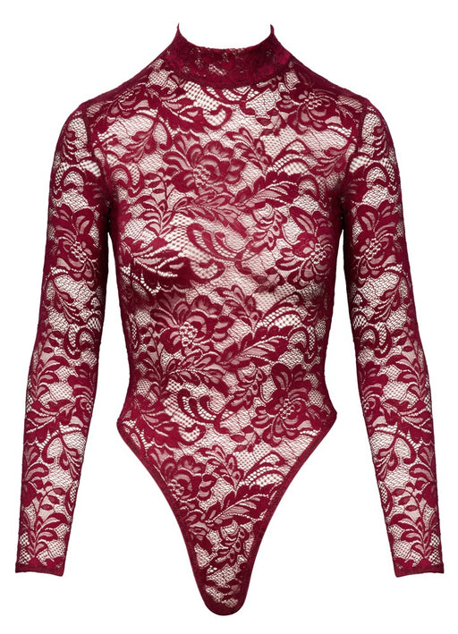 Feine Ornament-Spitze in edler Farbe!Langarm-Body von Cottelli LINGERIE mit kleinem Stehkragen. Komplett aus feiner Ornament-Spitze in edlem Bordea...