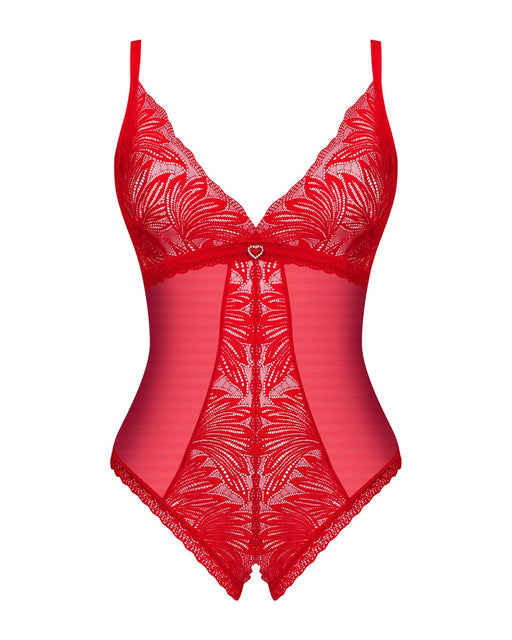 Zarte Spitze trifft auf einladende Öffnung!Der zarte Stringbody Chilisa von Obsessive verführt mit seinen zarten Spitzensäumen, die weibliche Attri...