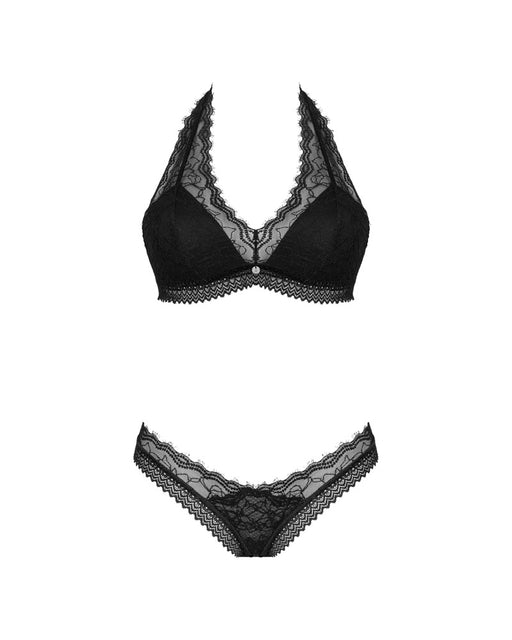 Spitzen-Mix mit Komfort!Schwarzes Dessous-Set Medilla von Obsessive mit Bügel-BH und String im bildschönen Mix verschiedener weicher Stretchspitzen...