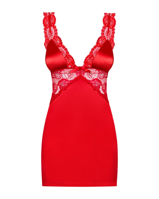 Sinnliche Eleganz!Figurbetonendes Dessouskleid und String im roten Set Secred von Obsessive. Seidiger Stretchsatin mit schönen Spitzen-Details. Wei...