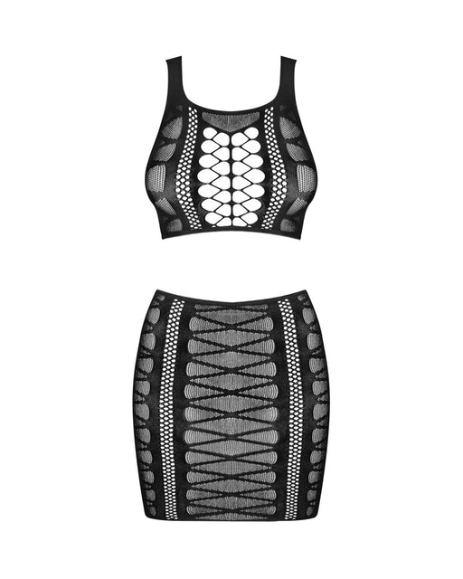 ObsessiveAuf LagerTiefe Einblicke von vorne bis hinten!Set bestehend aus Top und Rock von Obsessive betont die Figur auf eine sinnliche Art. Die Cut-outs am Dekollet...