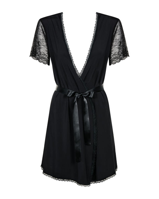 ObsessiveAuf LagerElegant verführerische Transparenz!Eleganter kurzer Kimono und String im Set Alluria von Obsessive. Feine schwarze Tüll-Transparenz mit kurzen Spit...