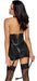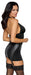 Domina-Kostüm von Cottelli COSTUMES mit kurzem Strapskleid plus kleiner Peitsche. Tief dekolletiertes, eng anliegendes Kleid mit figurbetonenden Mattlook-Einsätzen. Rundum weich und elastisch für perfekte Passform und hohen Tragekomfort. Neckholder mit Clipverschluss. Im unteren Rücken dekorative variable Schnürung. Die verstellbaren Strumpfhalter sind auch komplett abnehmbar.