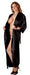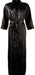 Langer schwarzer Kimono in weichfließender, glänzender Satin-Qualität - schmeichelt auch der etwas stärkeren Figur! Mit Bindegürtel. Ohne Taschen.