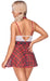 Schuluniform-Kostüm von Cottelli COSTUMES bestehend aus kurzem Trägerkleid und Halsband. Verspieltes weißes Oberteil aus Powernet und zarter Spitze, süß verziert mit roten Schleifchen. Die Karo-Träger sind passend verstellbar. Das ausgestellte Karo-Röckchen ist ebenfalls aus Powernet gefertigt. Das karierte Halsband verführt vorne mit einem glitzernden Strassherz-Anhänger und hat im Nacken einen verstellbaren Klettverschluss.
