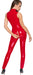 Ärmelloser Overall von Black Level komplett im knallroten Lackglanz. In figurnaher Schnittführung mit langem schmalem Bein. Der Clou ist der praktisch-erotische 2-Wege-Reißverschluss, der vom Stehkragen durch den Schritt bis über den Po verläuft und sich von beiden Seiten schnell öffnen lässt.