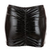 Dieser heiße Minirock aus schwarzem Wetlook bringt den Po dank der rückseitigen Raffung perfekt zur Geltung.