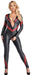 Rundum elastischer Overall von Cottelli PARTY im schwarzen Mattlook mit roten betonenden Kontrast-Streifen. In hautnaher Schnittführung mit langem Arm und langem engen Bein. Vorne tief bis zum Bauch ausgeschnitten, eine silberfarbene Kette hält alles schön zusammen. Im Rücken 3-Wege-Reißverschluss vom Nacken durch den Schritt bis nach vorn.