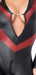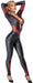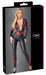 Rundum elastischer Overall von Cottelli PARTY im schwarzen Mattlook mit roten betonenden Kontrast-Streifen. In hautnaher Schnittführung mit langem Arm und langem engen Bein. Vorne tief bis zum Bauch ausgeschnitten, eine silberfarbene Kette hält alles schön zusammen. Im Rücken 3-Wege-Reißverschluss vom Nacken durch den Schritt bis nach vorn.
