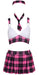 Hochwertiges 4-teiliges Schuluniform-Kostüm von Cottelli COSTUMES im pink/schwarz/weißen Karo-Look. Bestehend aus Top, Faltenröckchen, typischer Krawatte und Haarband. Top mit weißen Cups und Ringen für die breiten Träger, die im Rücken über Kreuz verlaufen. Extra kurzes Röckchen mit bequemem Stretchbund.