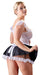 Das Oberteil besteht aus weißer Spitze. Die dünnen Träger sind verstellbar, die Spitzenträger schulterfrei tragbar. Der blickdichte schwarze Rock ist leicht ausgestellt und wer genau hinschaut, erblickt die weiße Spitze, die tollkühn am Rand hervorlugt... Um das Bild abzurunden, gehört natürlich auch eine kleine weiße Servierschürze zum Kleid, die einfach umgebunden wird.