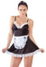 Figurbetontes Minikleid mit verstellbaren Trägern. Leicht ausgestellter Rock und weiße Spitze an Saum und Ausschnitt. Inklusive Hüftschürze mit Spitze und Zierschleifchen zum Binden.