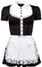 Süßes schwarzes Minikleid mit weißem Kragen, Knopfleiste und Rüschenverzierung am Dekolleté. Inklusive weiße Schürze, hinten zum Binden.