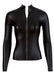 Wer steht nicht auf heiße Kurven?! Dieses schwarze Top betont die besten Argumente ganz hervorragend - ohne vorab zu viel zu verraten. Hochgeschlossen mit kleinem Stehkragen und langen Armen kommt das mattglänzende Top daher, doch dank des hautengen und taillierten Schnitts ist es alles andere als langweilig.