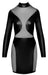 Enges kurzes Langarm-Kleid im edlen schwarzen Mattlook mit transparenten Powernet-Einsätzen vorne und hinten, sowie jeweils seitlich im Rockteil. Rundum weich und elastisch für hautnahe Passform und hohen Tragekomfort. Stehkragen mit 2 Knöpfen im Nacken, darunter kleiner runder Ausschnitt.