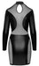 Enges kurzes Langarm-Kleid im edlen schwarzen Mattlook mit transparenten Powernet-Einsätzen vorne und hinten, sowie jeweils seitlich im Rockteil. Rundum weich und elastisch für hautnahe Passform und hohen Tragekomfort. Stehkragen mit 2 Knöpfen im Nacken, darunter kleiner runder Ausschnitt.