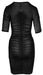 Figurbetonendes Halbarm-Minikleid in semi-transparentem Schwarz mit effektvoller Raffung vorne und hinten. Dadurch ist der Saum vorne etwas kürzer als seitlich und hinten. Vorne extra tief in V-Form ausgeschnitten. Weich und hochelastisch für hohen Tragekomfort.