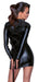 Elastisches Langarm-Kleid von Cottelli BONDAGE in enger figurnaher Schnittführung im schwarzen edlen Mattlook. Mit extravagantem hohem Kragen bis über die Nase, wo auch der Front-Reißverschluss beginnt und bis zum Saum durchläuft – das Kleid kann somit komplett geöffnet werden. Die langen Arme sind mit einem verstärkten Streifenbesatz ausgestattet, in den jeweils 5 Bondage-Ringe eingearbeitet sind. Mit beiliegendem Bondage-Band, können so die Arme auf dem Rücken fixiert werden.