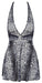 Leicht ausgestelltes, kurzes Kleid von Cottelli LINGERIE in Schlangenhaut-Optik. Extra tief dekolletiert und mit großem silberfarbenem Ring akzentuiert. Rückenfrei mit Neckholder zum Binden. Komplett aus feinem transparentem Powernet gearbeitet und aufwendig bedruckt. Rundum elastisch und weich für hohen Tragekomfort.