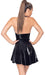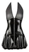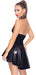 Kurzes Kleid von Black Level komplett im schwarzen Lackglanz mit Cups und Neckholder aus Powernet. In figurnaher Schnittführung mit ausgestelltem Röckchen, das hinten ein bisschen länger gearbeitet ist als vorne. Vom tiefen Dekolleté bis zum Saum führt vorne ein durchgehender Reißverschluss.