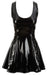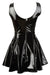 Kurzes, ärmelloses Kleid von Black Level komplett im schwarzen Lackglanz mit tiefem Ausschnitt vorne und hinten. In figurnaher Schnittführung mit ausgestelltem Röckchen. Hinten mit eingearbeitetem Reißverschluss.