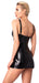 Extra kurzes tailliertes Trägerkleid von Noir im schwarzen edlen Powerwetlook mit Silhouette führenden Längsnähten. Weich und elastisch für hautnahen Sitz mit hohem Tragekomfort. Mit durchgehendem Reißverschluss vorne. Abnehmbarer Gürtel mit dekorativem Ring vorne und Druckknopfverschluss hinten. Die breiten Träger sind passend verstellbar.