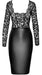 Kleid von Noir in knieumspielender Länge. Enge taillierte Schnittführung mit Oberteil aus weicher elastischer Spitze und Rockteil im edlen anschmiegsamen Powerwetlook. Mit langem Arm und aufregendem Dekolleté. Hinten kleiner Gehschlitz.