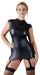 Das hochgeschlossene und ärmellose kurze Kleid von Cottelli PARTY aus mattglänzendem Stoff überzeugt mit seinem Zwei-Wege-Reißverschluss vorne und den vier angenähten Strapshaltern. Schwarz.