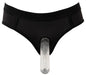 Schwarzer Strap-on-Slip von Bad Kitty aus weicher elastischer Mikrofaser. Vorne doppellagig gearbeitet und mit Einschub, sowie sorgfältig eingearbeitetem Stretch-Haltering (Ø 3,5 cm) zum Einsetzen eines Dildo/Vibrators mit Stand-/Saugfuß.