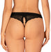 Schwarzer Riostring ouvert Chemeris von Obsessive aus feiner elastischer Spitze. Verführerisch offener Schritt in Riemchenoptik. Mit kleinem Schmuckelement vorne am komfortablen Stretchbund.