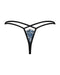 Raffiniert geschnittener String Yassmyne von Obsessive aus blauer Wimpernspitze mit schwarzen weichen Stretchriemchen. Vorne am Bund mit kleinem Schmuckelement.